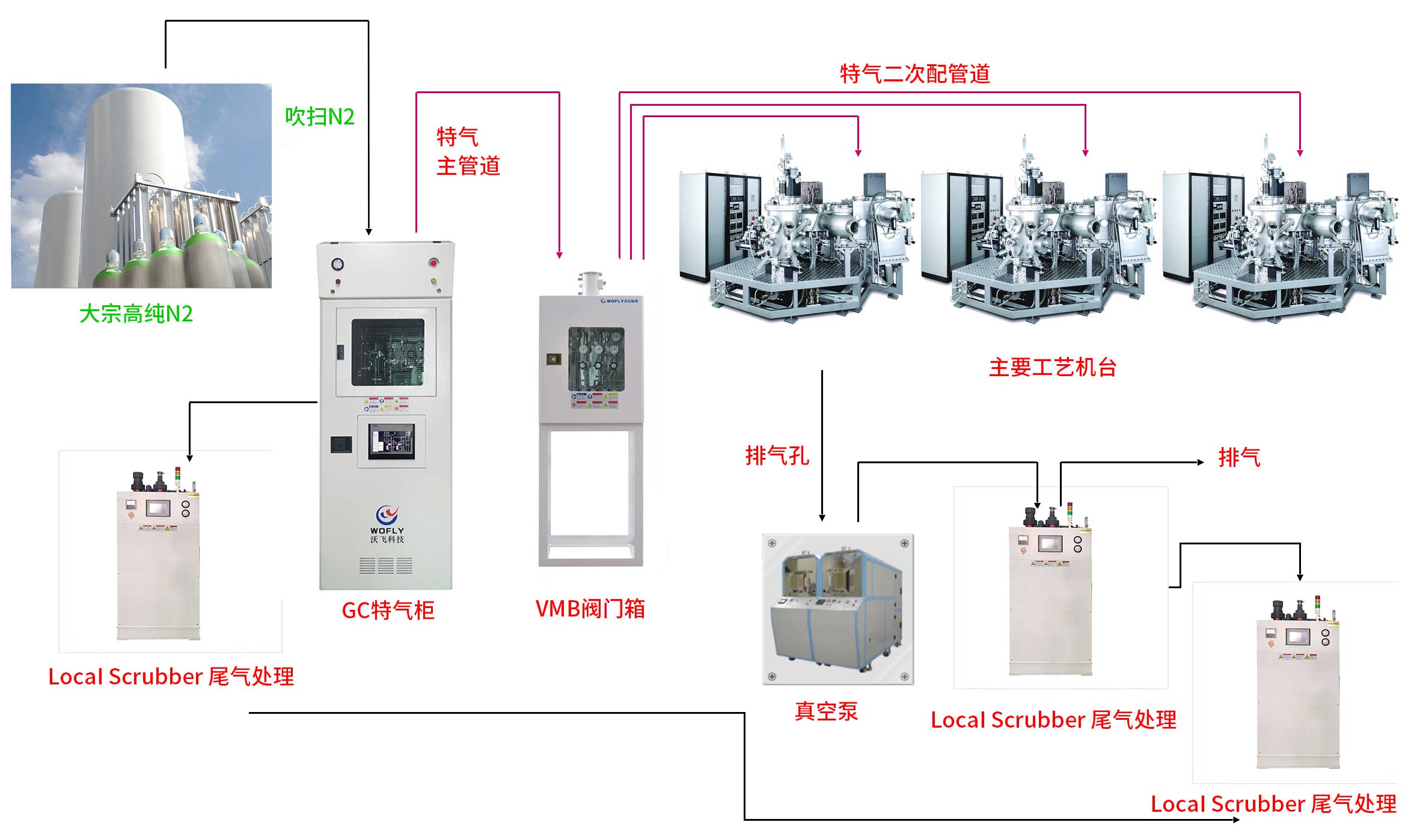 深圳沃飛科技有限公司成立于2011年,公司注冊(cè)資金2180萬(wàn),是一家專業(yè)從事氣體應(yīng)用系統(tǒng)工程:電子特氣管道系統(tǒng)、實(shí)驗(yàn)室管道供氣系統(tǒng)、工業(yè)集中供氣系統(tǒng)、Local Scrubber尾氣處理系統(tǒng)、大宗氣體(液體)系統(tǒng)、高純氣體及特殊工藝氣體二次配管系統(tǒng)、化學(xué)品輸送系統(tǒng)、純水系統(tǒng),提供從技術(shù)咨詢、整體規(guī)劃、系統(tǒng)設(shè)計(jì)、選定設(shè)備、預(yù)制組件、項(xiàng)目現(xiàn)場(chǎng)安裝建設(shè)、整體系統(tǒng)檢測(cè)等全套工程技術(shù)服務(wù)和配套產(chǎn)品銷售于一體的高新技術(shù)企業(yè);擁有GC2壓力管道安裝資質(zhì)、機(jī)電安裝工程承包資質(zhì)。工程項(xiàng)目覆蓋半導(dǎo)體、集成電路、光電、新能源、微電子、生物醫(yī)藥、科研所、標(biāo)準(zhǔn)檢測(cè)等高科技行業(yè);為客戶提供高純工藝系統(tǒng)整體解決方案。