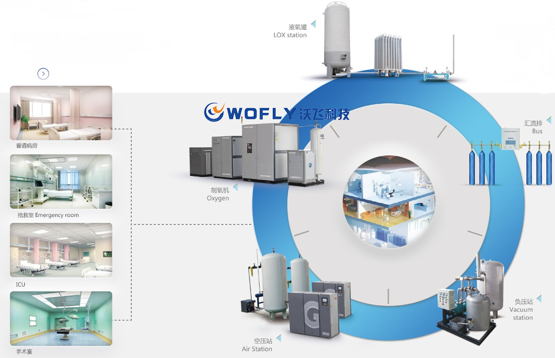 為了保證疫情期間醫(yī)用氧氣供應,沃飛科技暢通供氧“生命線”,為醫(yī)院提供從技術咨詢、整體規(guī)劃、集中供氣系統(tǒng)設計、選定設備、預制組件、項目現場安裝建設、整體系統(tǒng)檢測等全套工程技術服務和配套產品與一體的交鑰匙式服務,其集中供氧系統(tǒng)配置有二級調壓系統(tǒng)和氣體管道,可以按照醫(yī)院需求為病房或實驗室的用氣使用點輸出穩(wěn)定的氣體,通過輸氧管路,便捷地將氧氣輸送至醫(yī)院病房、急救室、觀察室和手術室等科室,優(yōu)于傳統(tǒng)鋼瓶供氧的方式,更好地解決醫(yī)療用氧的需求。例如,制氧系統(tǒng)輸送的氧氣能更好地配合呼吸機使用,滿足呼吸機的連續(xù)開機,高流量、連續(xù)不斷地供給氧氣的要求。