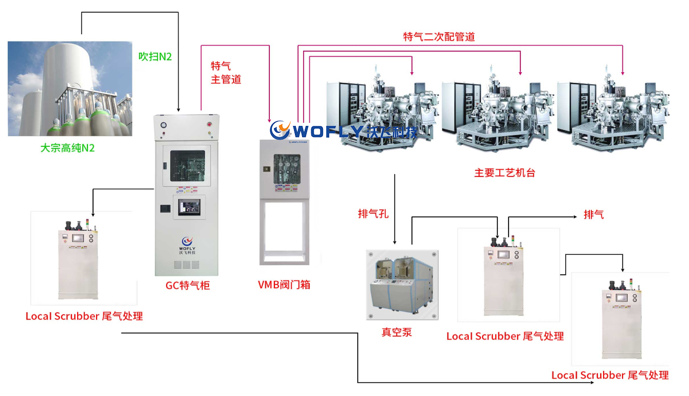 大“氣”晚來(lái)遲,大“勢(shì)”正興起。作為專業(yè)從事氣體應(yīng)用系統(tǒng)工程的中堅(jiān)力量,沃飛科技打造了安全可靠的電子特氣管道系統(tǒng),將特種氣體從氣源端、根據(jù)工藝設(shè)備的工藝需求、通過(guò)對(duì)流量和壓力等參數(shù)的控制,通過(guò)管道、無(wú)二次污染、穩(wěn)定地輸送到工藝設(shè)備,確保SiH4、NF3、C2易燃易爆的氣體、有毒的氣體、有腐蝕性的氣體、純度特別高(超過(guò)9.99%)的一些具有高危險(xiǎn)性的特氣儲(chǔ)存、輸送與分配。