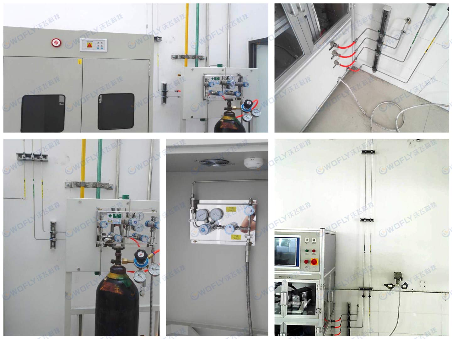 同時,按照國標要求,將所用全部氣體存放于儲氣間,并實現(xiàn)集中輸送,組成實驗室集中供氣系統(tǒng)。實現(xiàn)人氣分離,保障分析測試人員在實驗中免受有毒有害氣體的侵害。