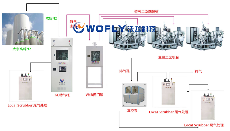 1、保持氣體純度:專用氣瓶均配有沖洗閥,以排除每次更換氣瓶時引入的雜質(zhì),確保了管路終端氣體的純度。